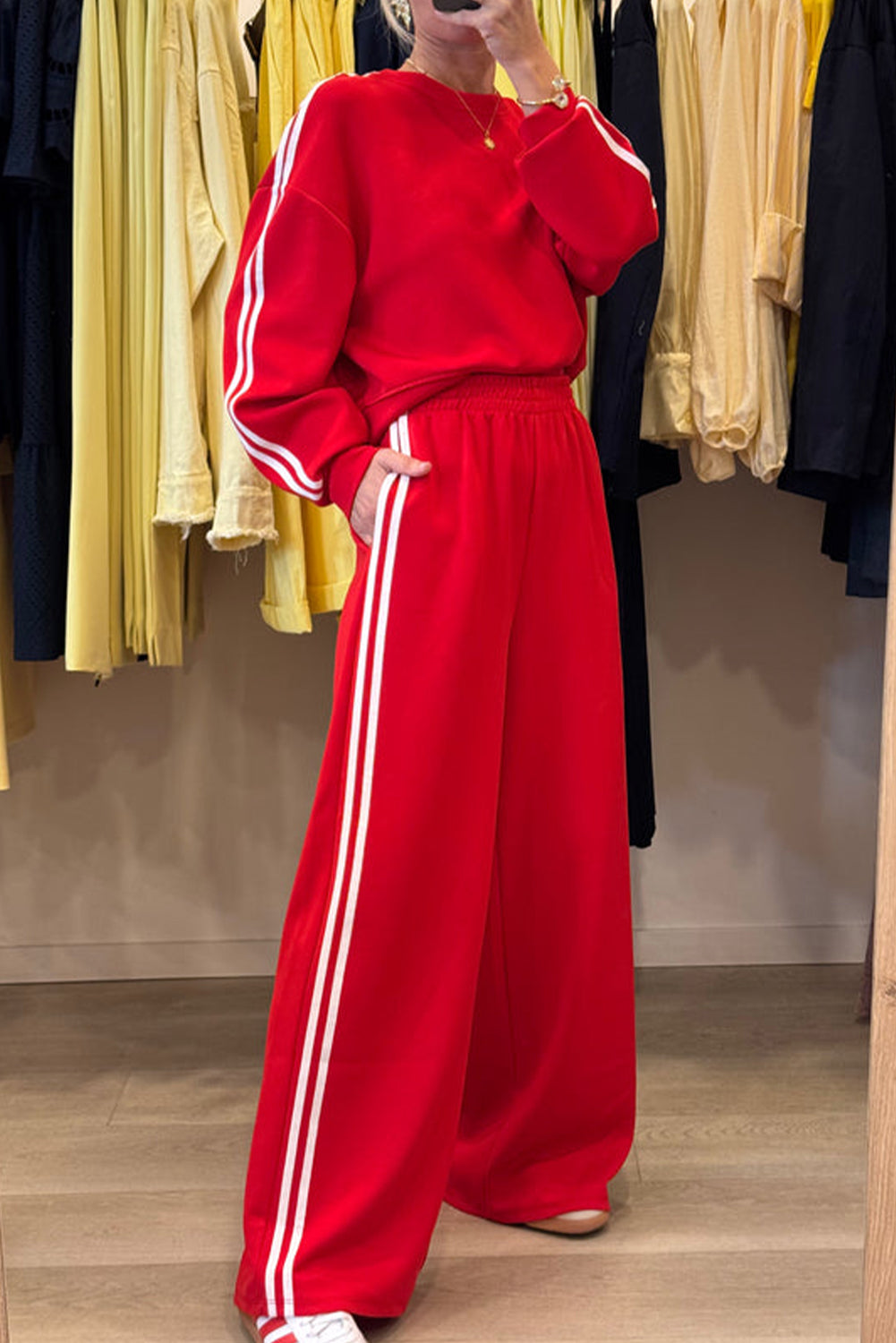 Red Varsity Striped Detail Cropped Pullover Wide Leg Pants 2pcs Outfit